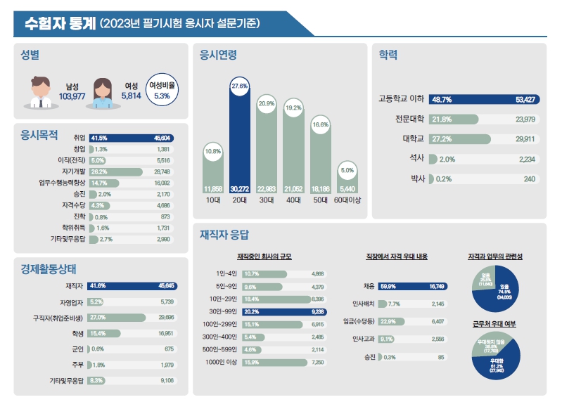 지게차운전기능사 2023년 수험자 및 취득자 통계