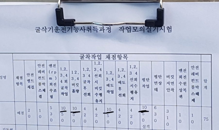 채점표를 간단하게라도 분석하는것이 중요한 이유는 굴삭기운전기능사실기가 100점 만점에 60점 이상이면 합격이지만, 중요한 주요 작업을 제대로 수행하지 못하거나 혹은 안전과 관련해서 자칫하면 놓칠 수 있는 행동에는 어떠한 것이 있는지 확인해 보는게 합격에 도움이 될 것입니다.