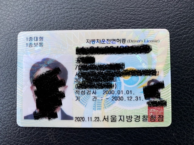 그래서 받은 면허증입니다. 면허증에 다른건 없고, 좌측 상단에 1종보통 위에 1종대형 이라는 글자 추가네요.