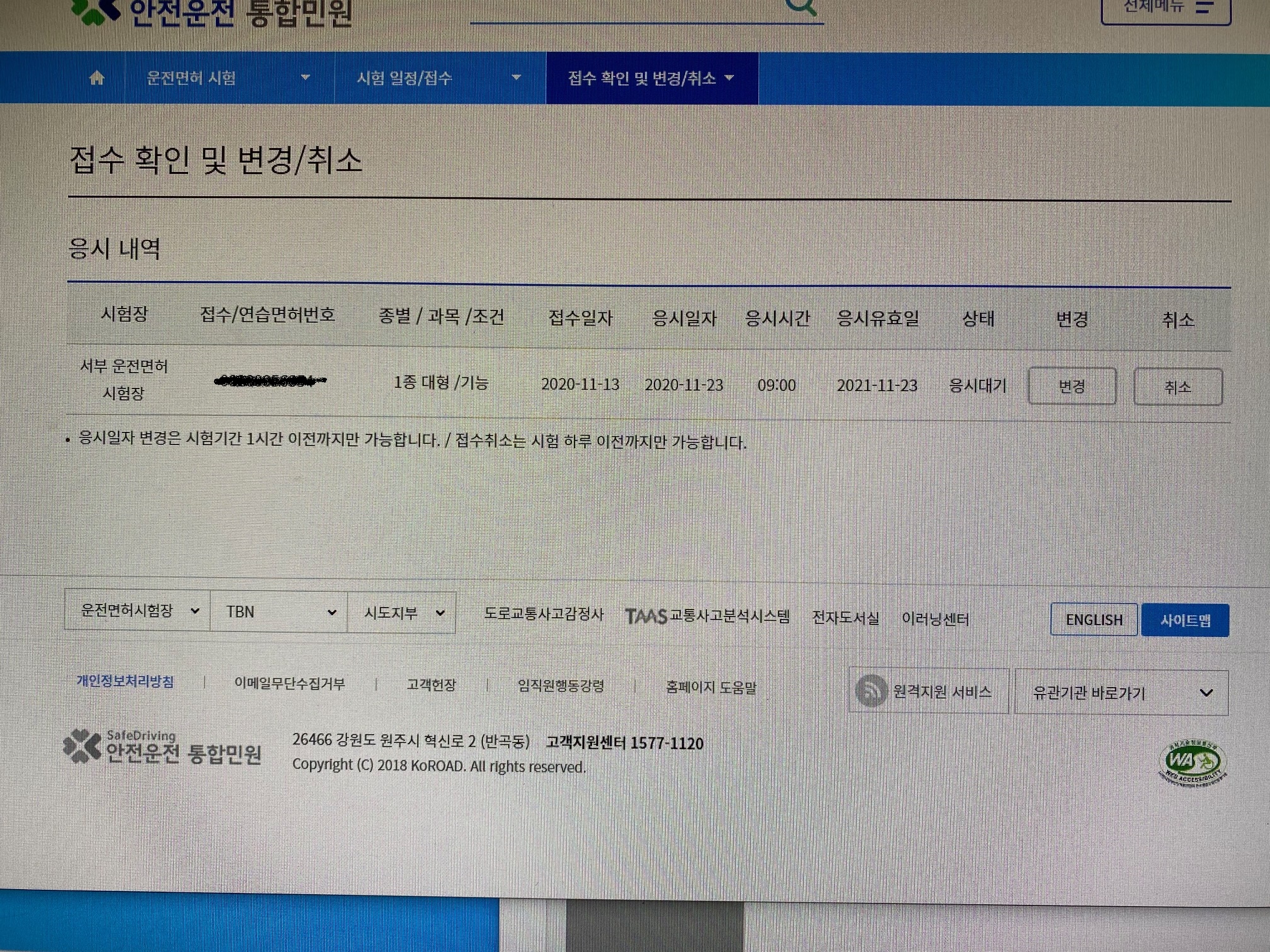 그래서 어느곳에서 면허시험을 볼까 서울 지역을 확인해 봤는데, 서울에서 1종대형시험이 가능한 시험장은 강남, 서부 도동 세군데 인것 같습니다. 강남은 자리가 가장 빨리 차 있었고, 서부운전면허 시험장에서 가장 빠르게 일정을 잡을 수 있습니다. 그래서 바로 대형면허 시험에 접수를 했습니다. 날짜는 11월 23일 오전 9시