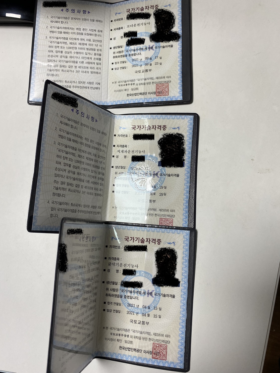 기존에 받은 두 자격증과 함께 찍어봤습니다.