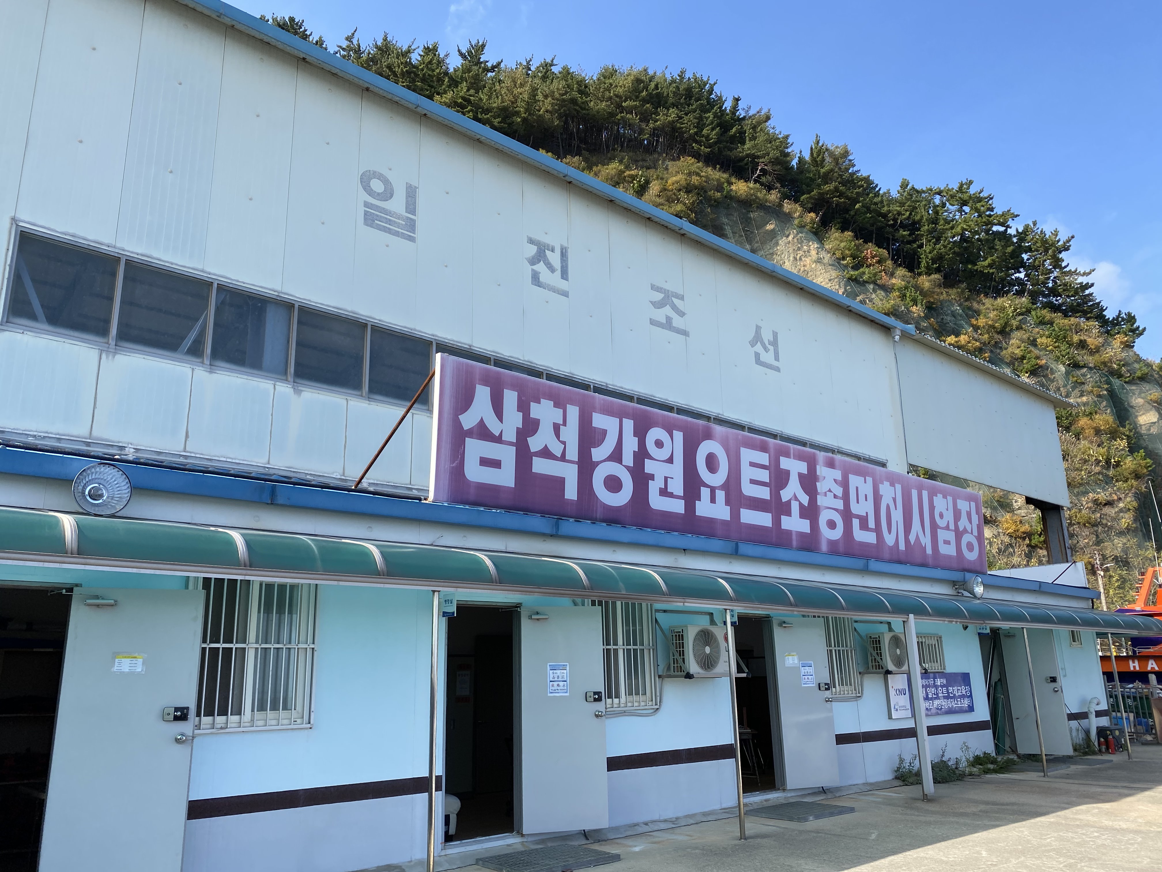 삼척 요트조종면허시험장 외관인데, 이미 본 센터에서 일반적인 요트 교육을 받은 상태라