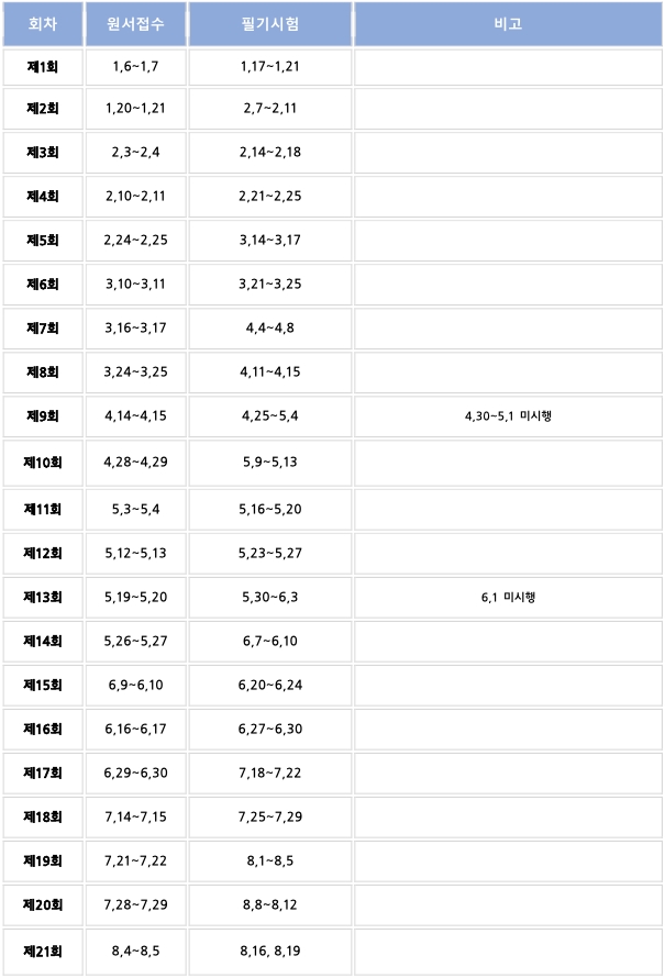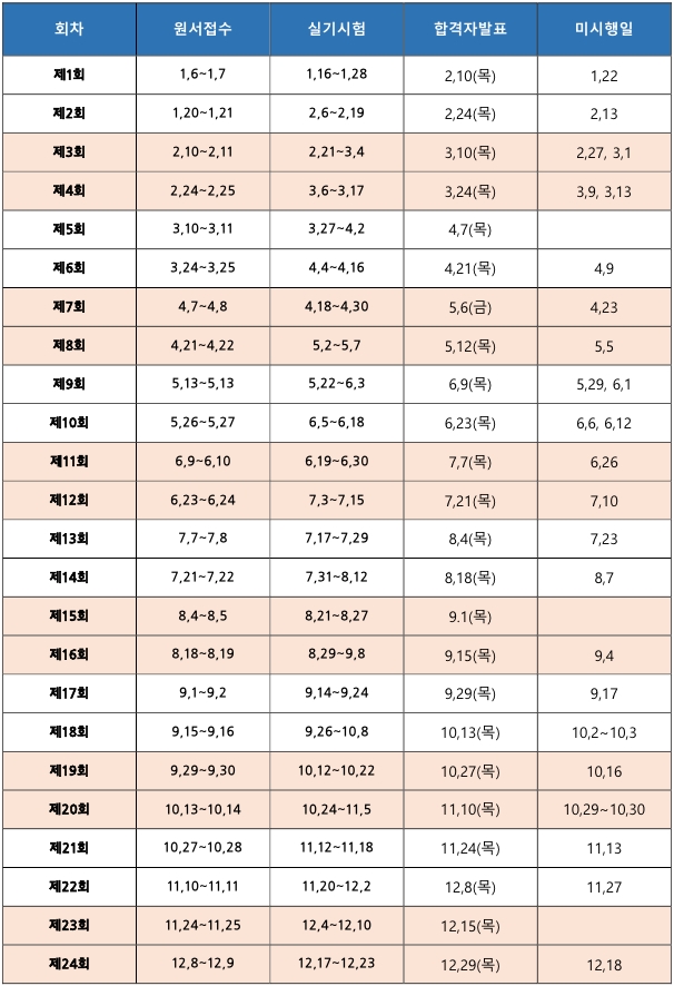 실기시험은 1년에 24회 계획되어 있습니다.