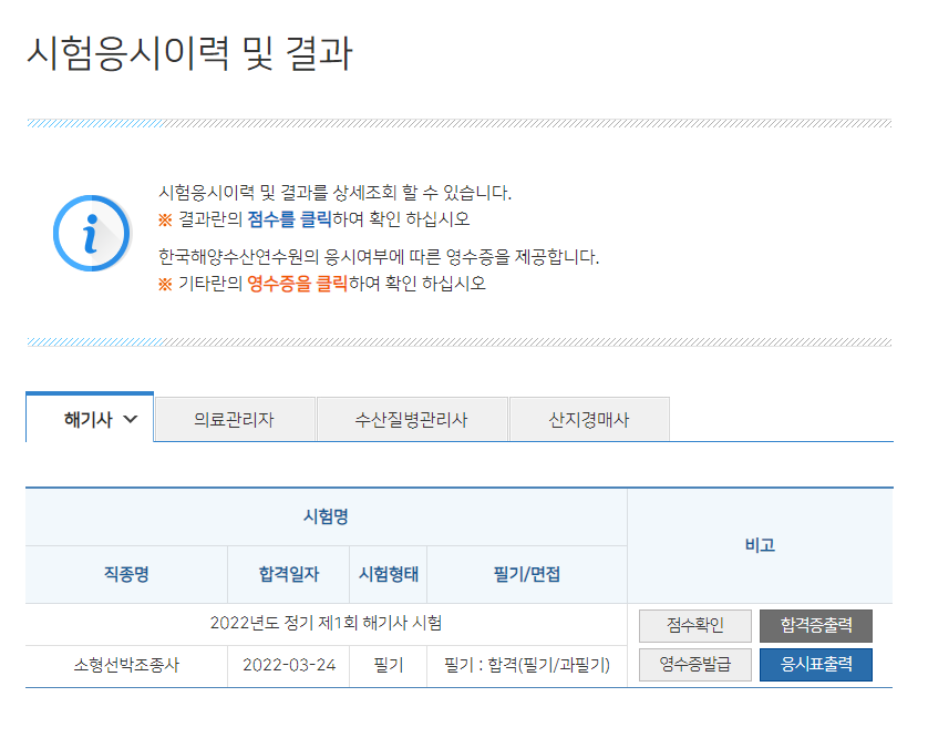 합격증과 합격 점수를 알기 위해서는 해기사 웹사이트에 로그인해야 합니다.