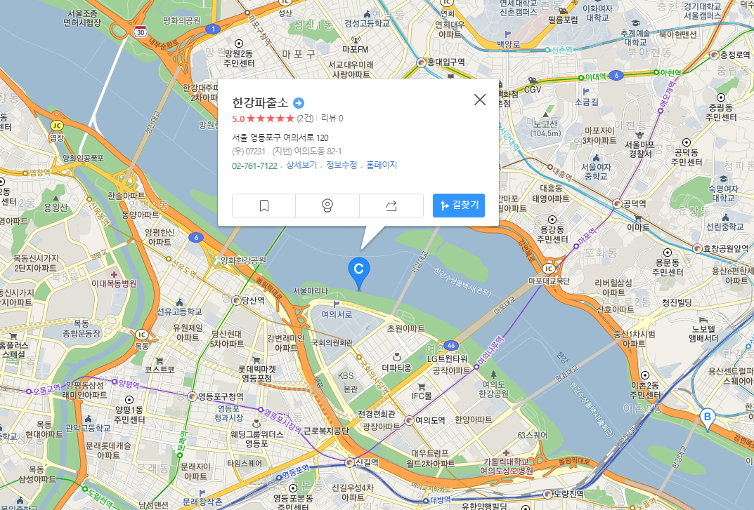 먼저, 제가 시험 본 시험장은 서울 여의도 앞에 있는 한강파출소입니다. 서울에 실기 시험 장소는 몇군데가 있지만, 필기 시험은 이곳에서만 볼 수 있습니다.