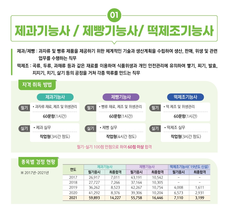 그럼 제과, 제빵기능사 그리고, 떡제조기능사는 어떤 자격증이며, 자격 취득 방법에 대해서 살펴보겠습니다.