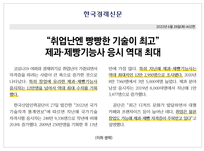 소개글에 보니, 올해 제과 제빵 응시율이 역대 최대였다고 합니다.