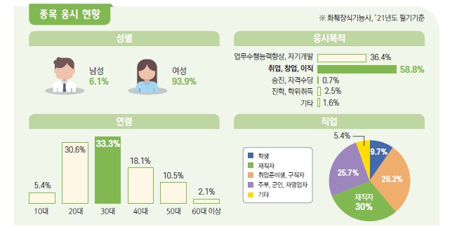 현재 응시 현황은 여성이 93% 이상으로 남성에 비해 아주 높은 비율입니다.