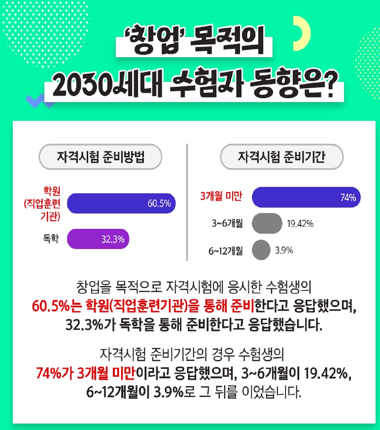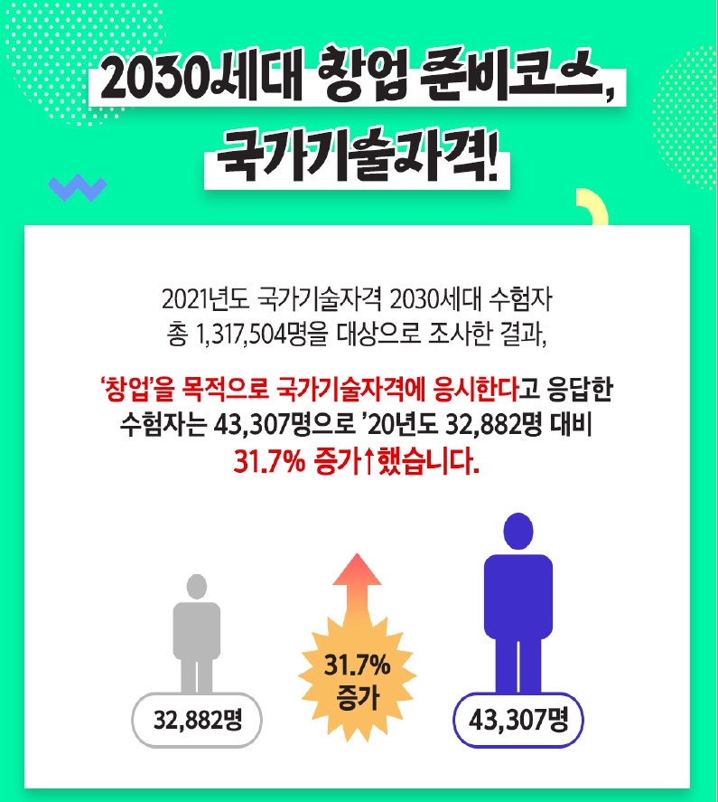 오늘은 산업인력공단에서 조사한 2030세대 창업 준비를 위한 국가기술자격증에 대한 내용입니다.