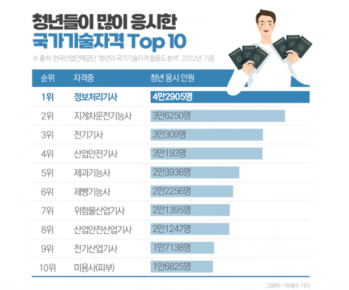 청년들이 가장 많이 몰린 자격증은 정보처리기사입니다.