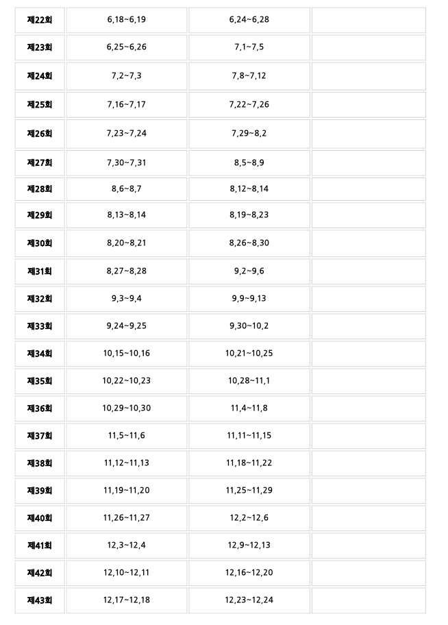 시험은 월요일부터 금요일까지 주중 시행을 원칙으로 하며, 상시시험이기 때문에 상황에 따라 시행일정이 변경될 수 있으니, 접수하실 때 꼭 확인이 필요합니다.