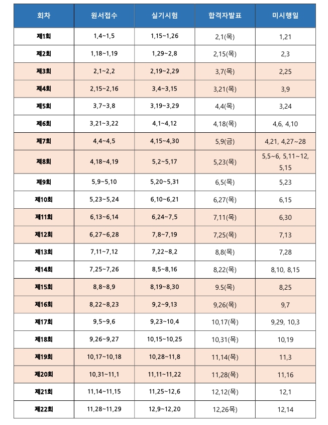 2024년에는 총 22회의 실기 시험이 시행됩니다.