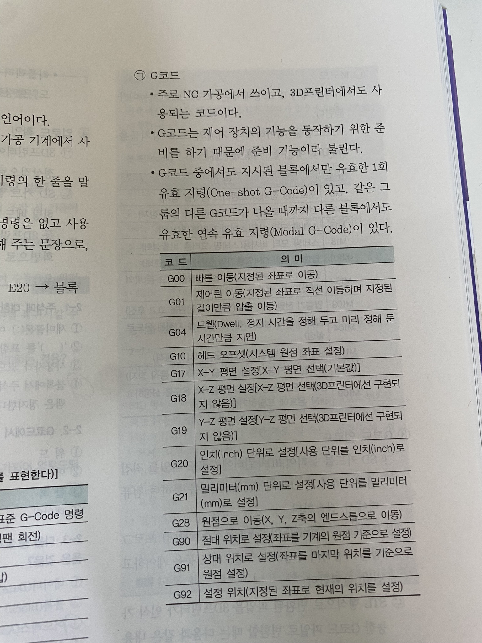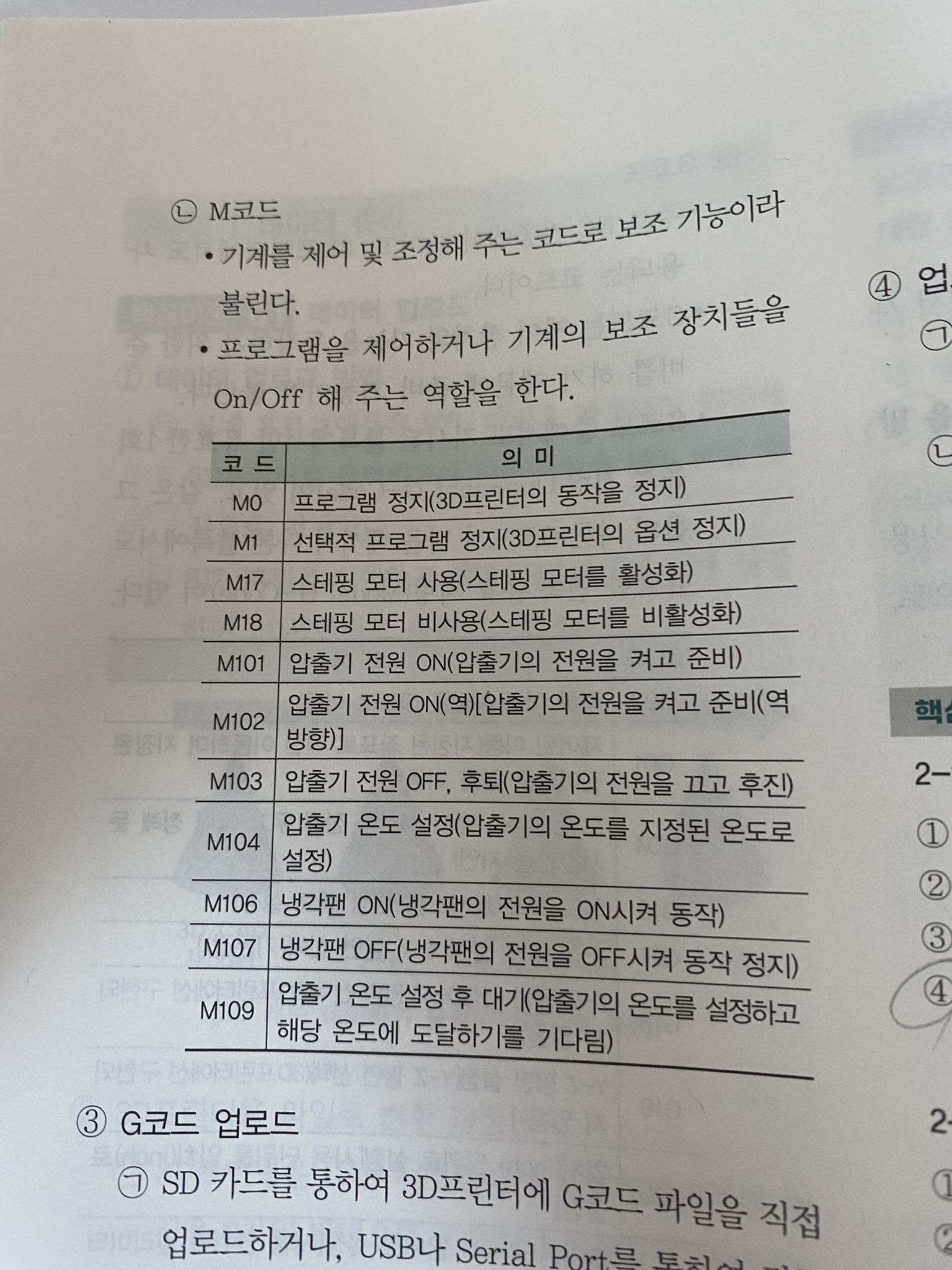 G코드, M코드, 3D프린터의 종류 및 3D 프린터의 출력 방식 등입니다.