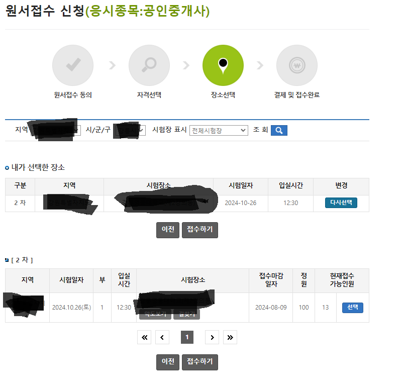 작년 1차에 합격한 사람은 2차만 응시할 수 있는 옵션이 나옵니다.
