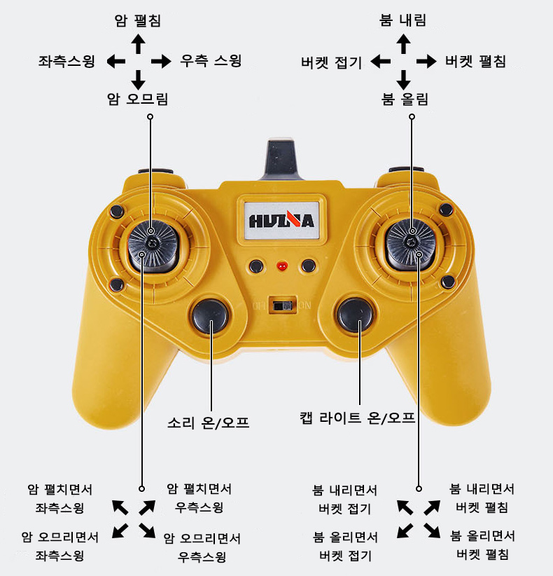작동 레버 원리는 실제 굴삭기와 동일합니다. 처음에 굴삭기 동작을 익히는데 많은 도움이 됩니다.