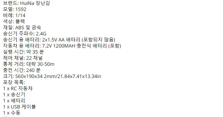 처음에 눈이 갔던 제품은 Huina 1580 이라는 제품이었습니다. 장난감이긴 하지만, 크기가 70*18* 55cm로 크기도 크고