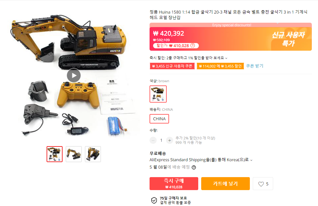 대량으로 생산하는 제품중에 가성비가 좋은 제품을 찾아 보고, 저는 중국 Huina 제품을 구입하게 되었습니다.