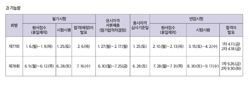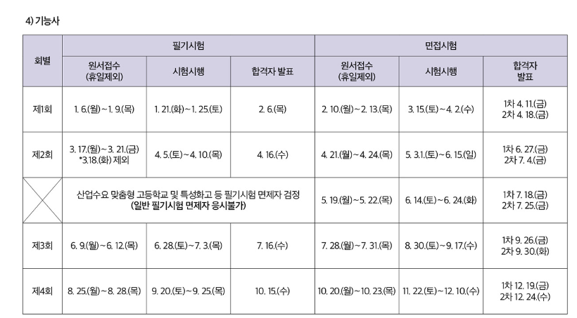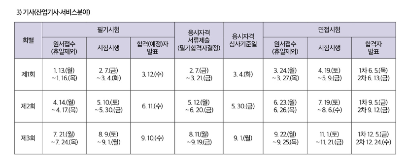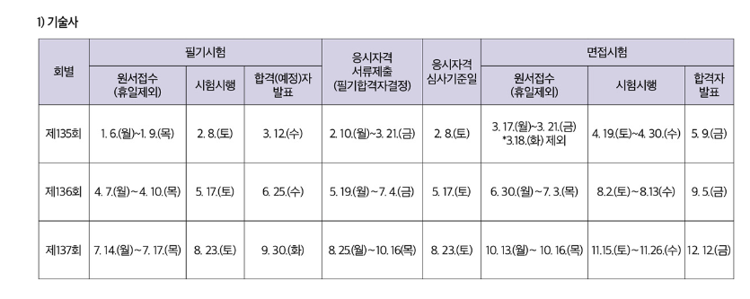 기술사, 기능장, 기사 그리고, 기능사에 따라 시험 일정이 다릅니다.