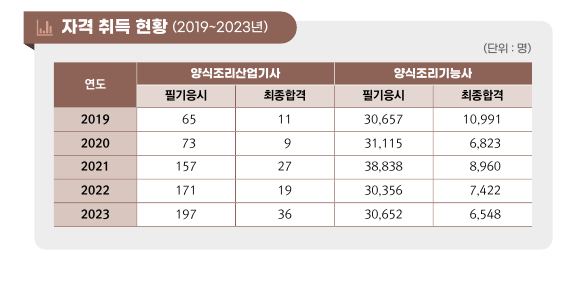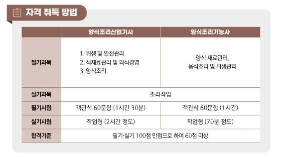 양식 조리산업기사 양식조리기능사 취득방법 및 응시현황